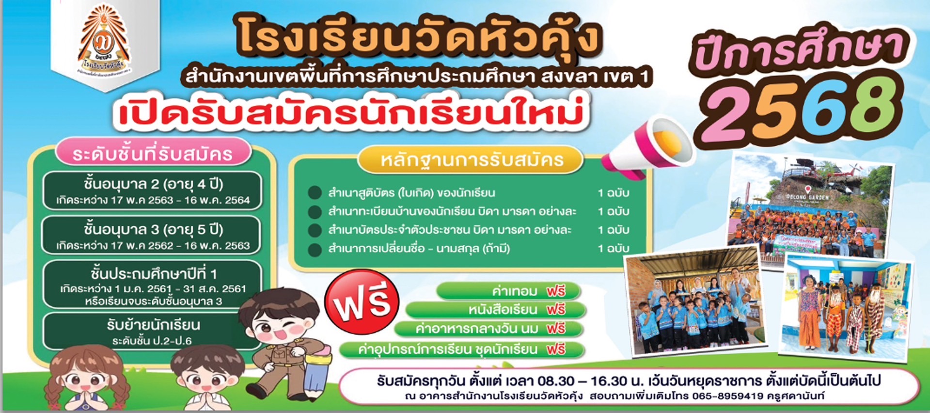 ประกาศโรงเรียนวัดหัวคุ้ง เรื่อง รับสมัครคัดเลือกบุคคลเพื่อจ้างเป็นลูกจ้างชั่วคราวปฏิบัติหน้าที่ครูผู้สอน ตำแหน่ง ครูอัตราจ้าง 10 ก.พ. 68